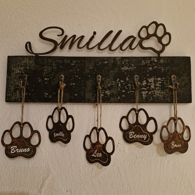 Gassi-Garderobe, Schriftzüge und personalisiere Pfoten